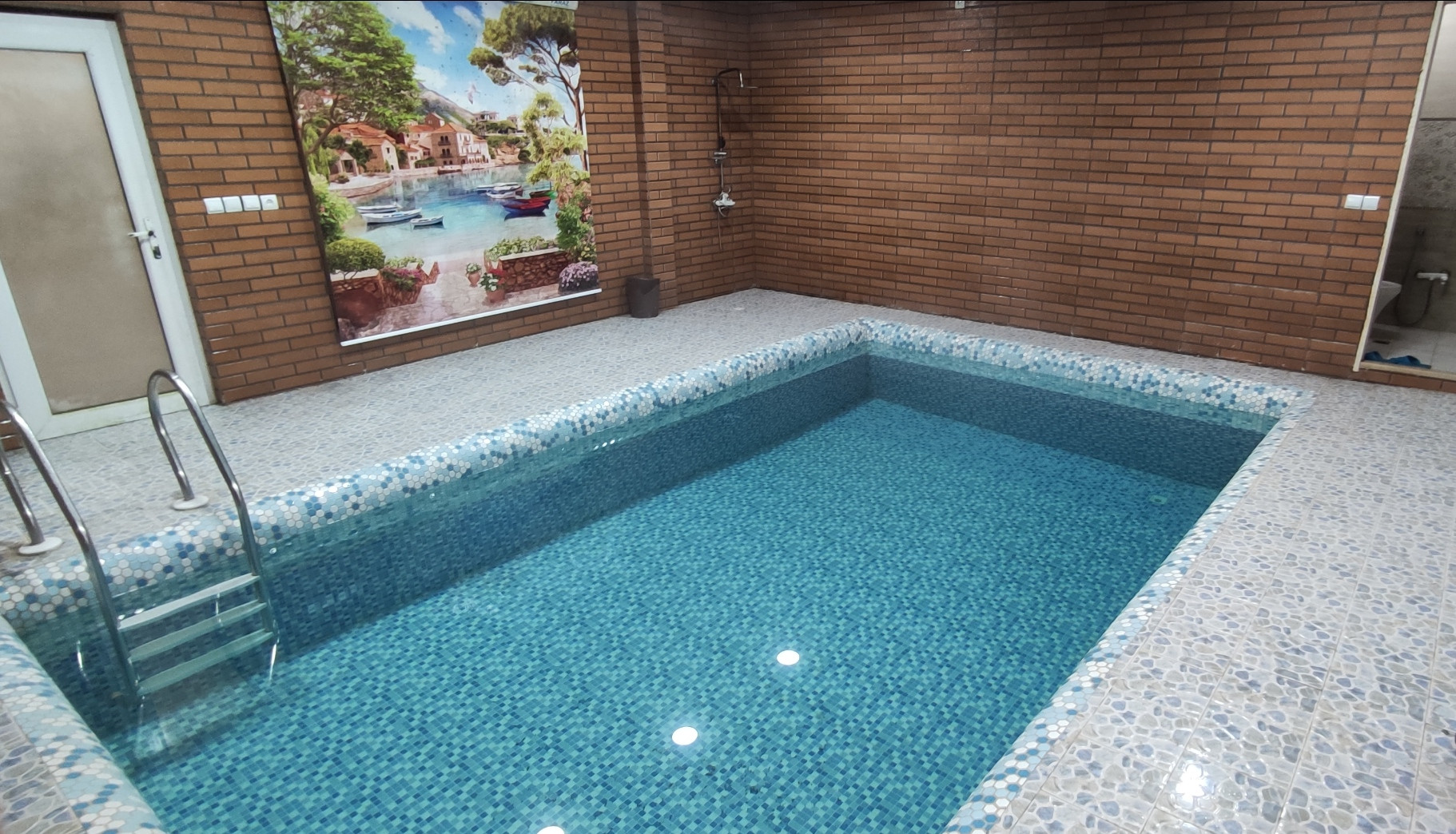 ابعاد استخر 3.5 در 5.5 متر و عمق آن از 1.1 تا 1.8 متر است.