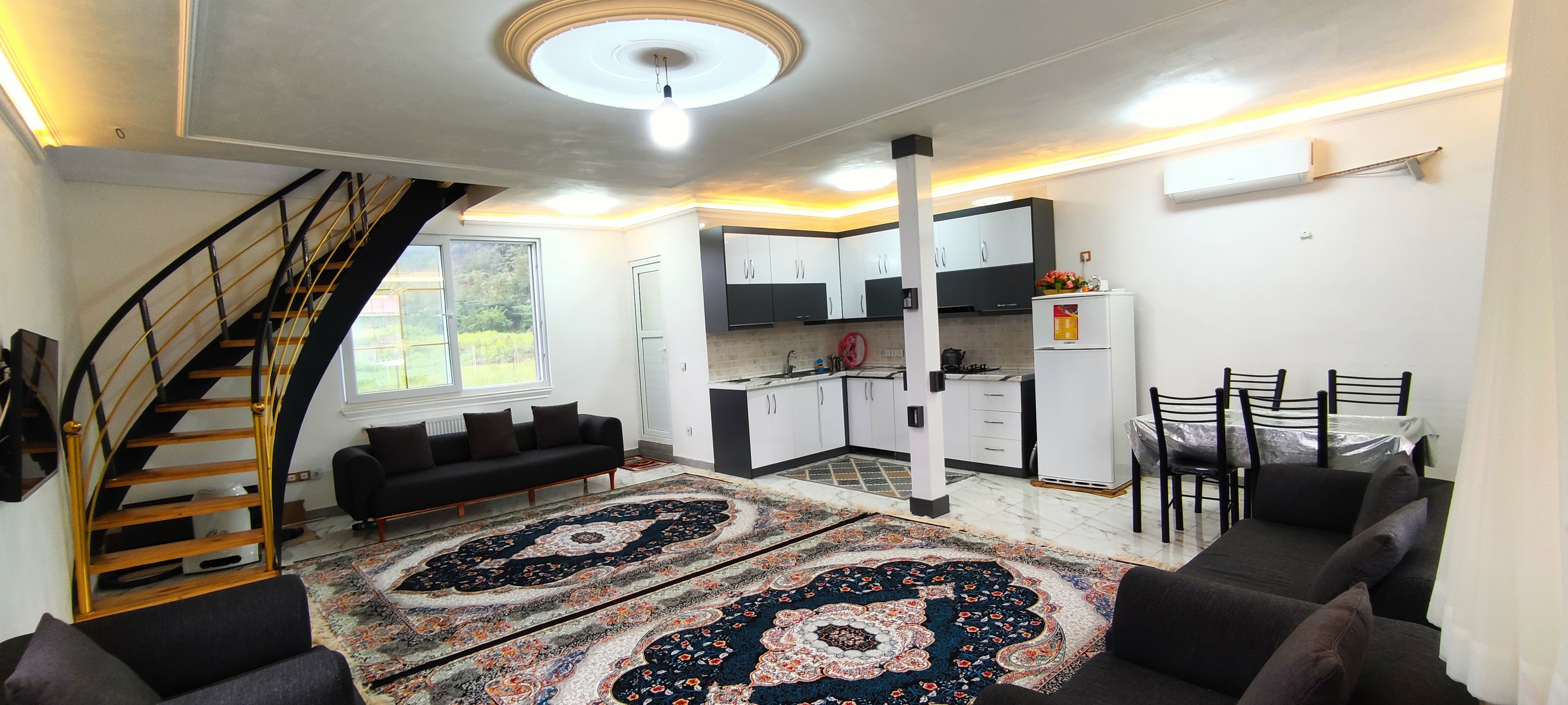 ویلا داری یک حال بزرگ و آشپز خانه و سرویس ایرانی در پایین و یک حال 20متری تراس 7متری و دواتاق خواب با ویو عالی و حمام و سرویس فرهنگی در طبقه بالا هست و هر طبقه داری کلر جداگانه است