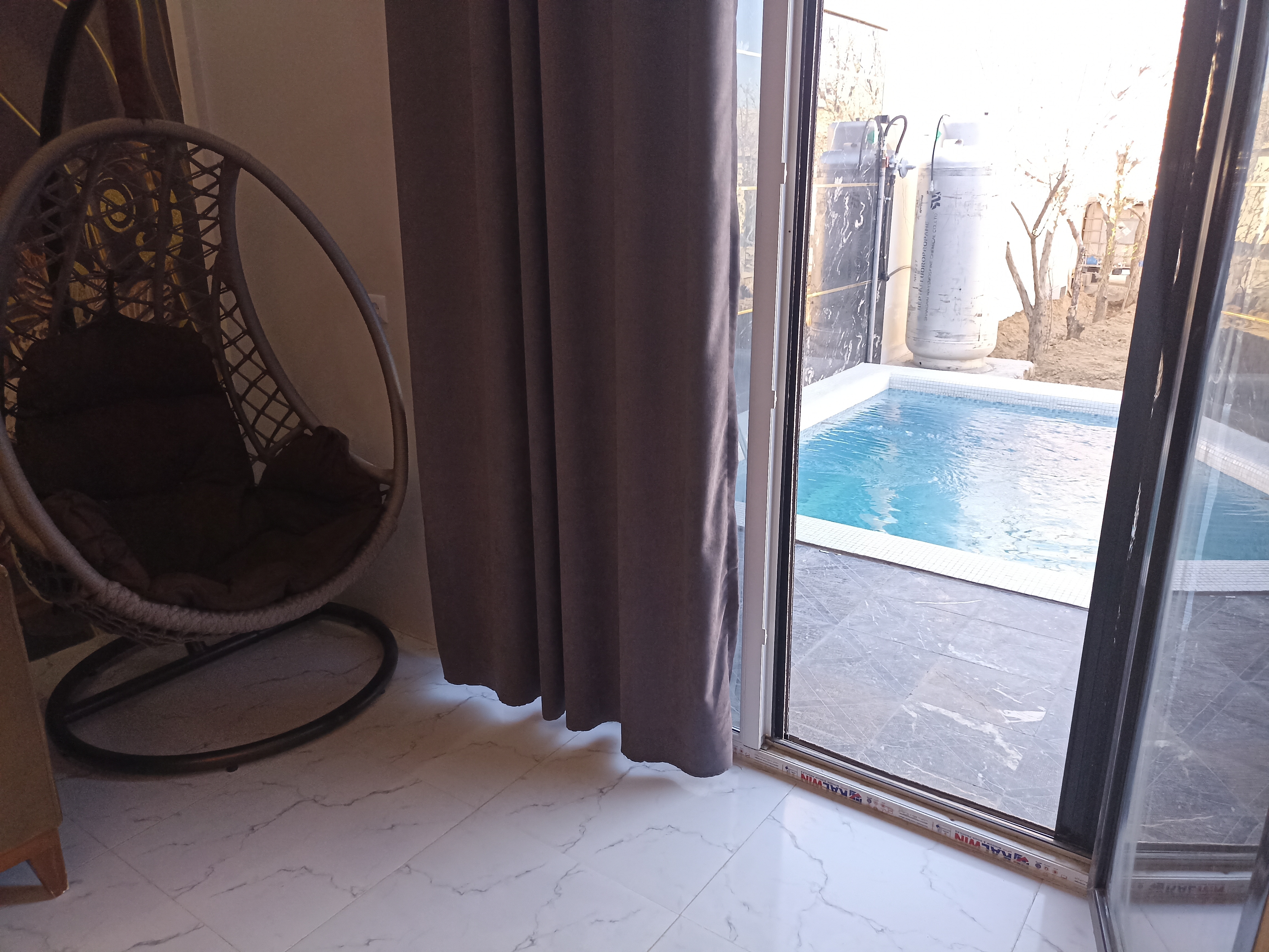دارای استخر روباز آبگرم به ابعاد 3 در 6 متری با عمق 1.70 به صورت فلت است.