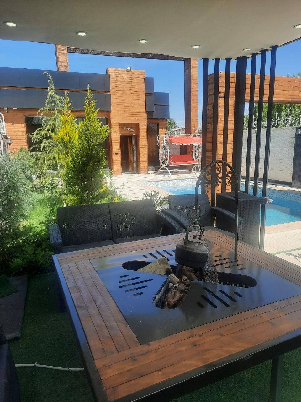 دارای آلاچیق 7 نفره است.دارای استخر روباز آبگرم به ابعاد 3.5 در 7.5 متری با عمق 2.5 متری به صورت فلت است.