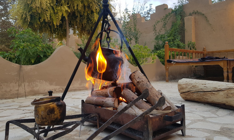 يحتوي على 6 غرف من القش تتسع لـ 30 شخصًا.