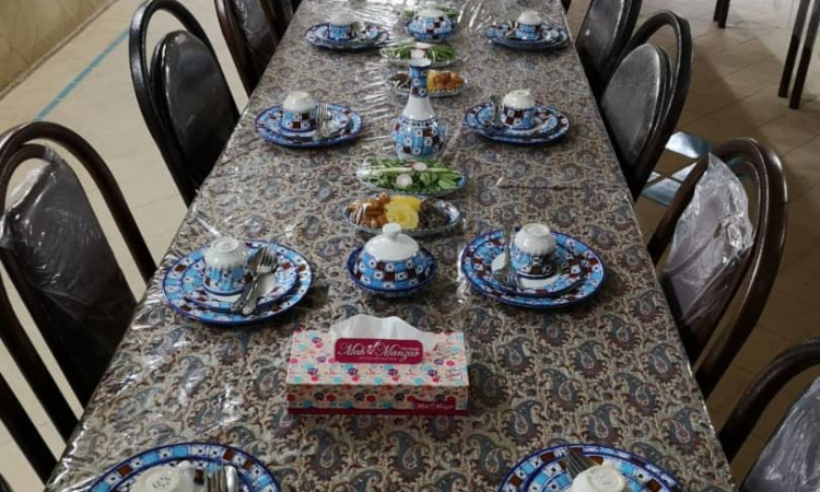 طبقه همکف یکی از ساختمان ها دارای غذاخوری است.
