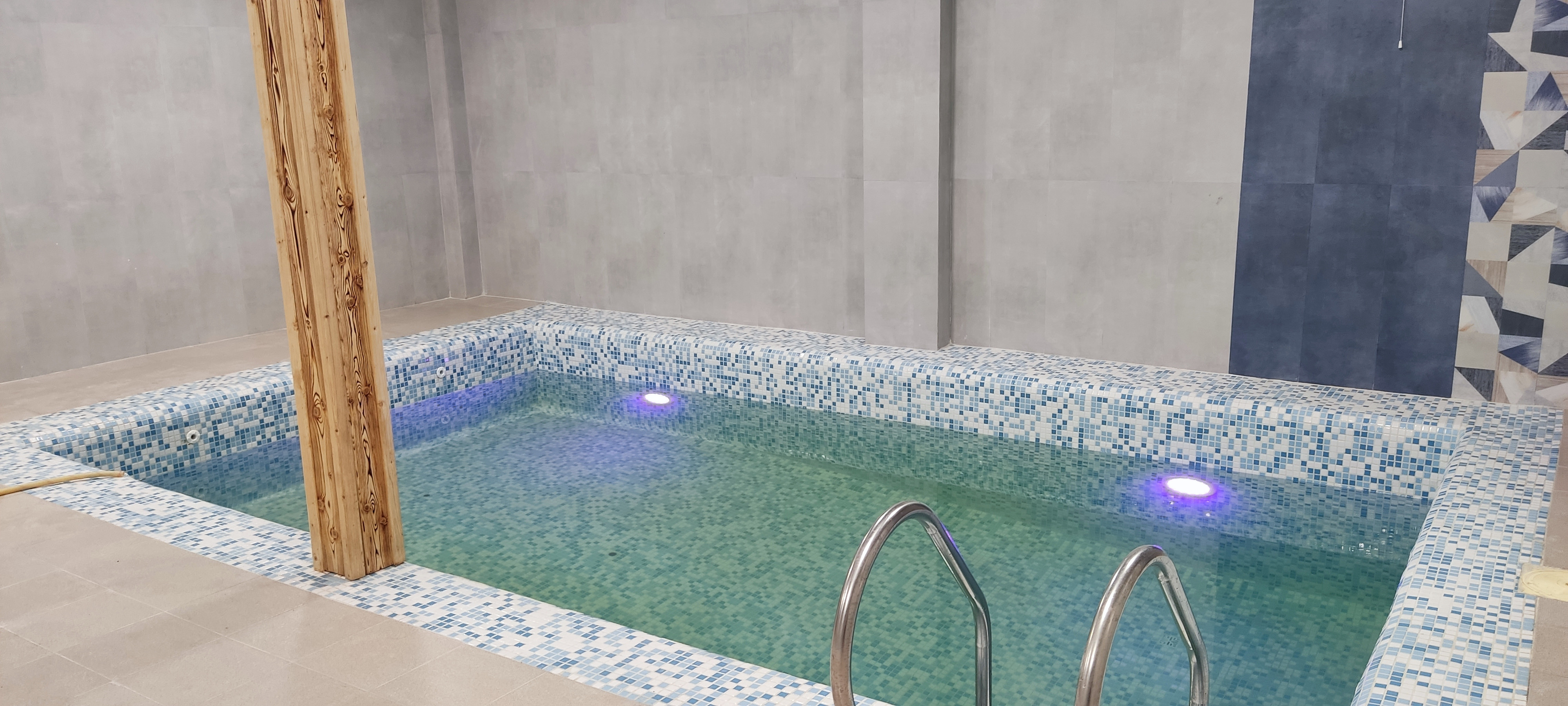 استخر نوساز بوده و سیستم گرمایش آن در حال آماده سازی است و در حال حاضر آب آن سرد است