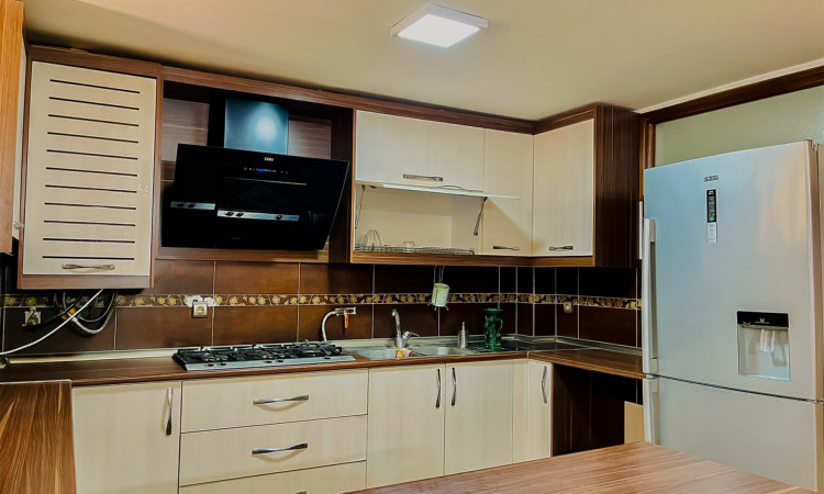 آشپزخانه فول امکانات: اجاق گاز، چای ساز،یخچال و لوازم آشپزی را دارد.