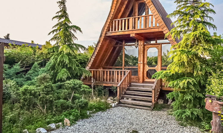 کلبه چوبی لوکس آناناس در فضای زیبای باغ با تمام امکانات رفاهی لوکس واقع شده است.