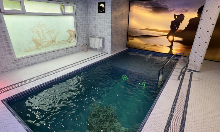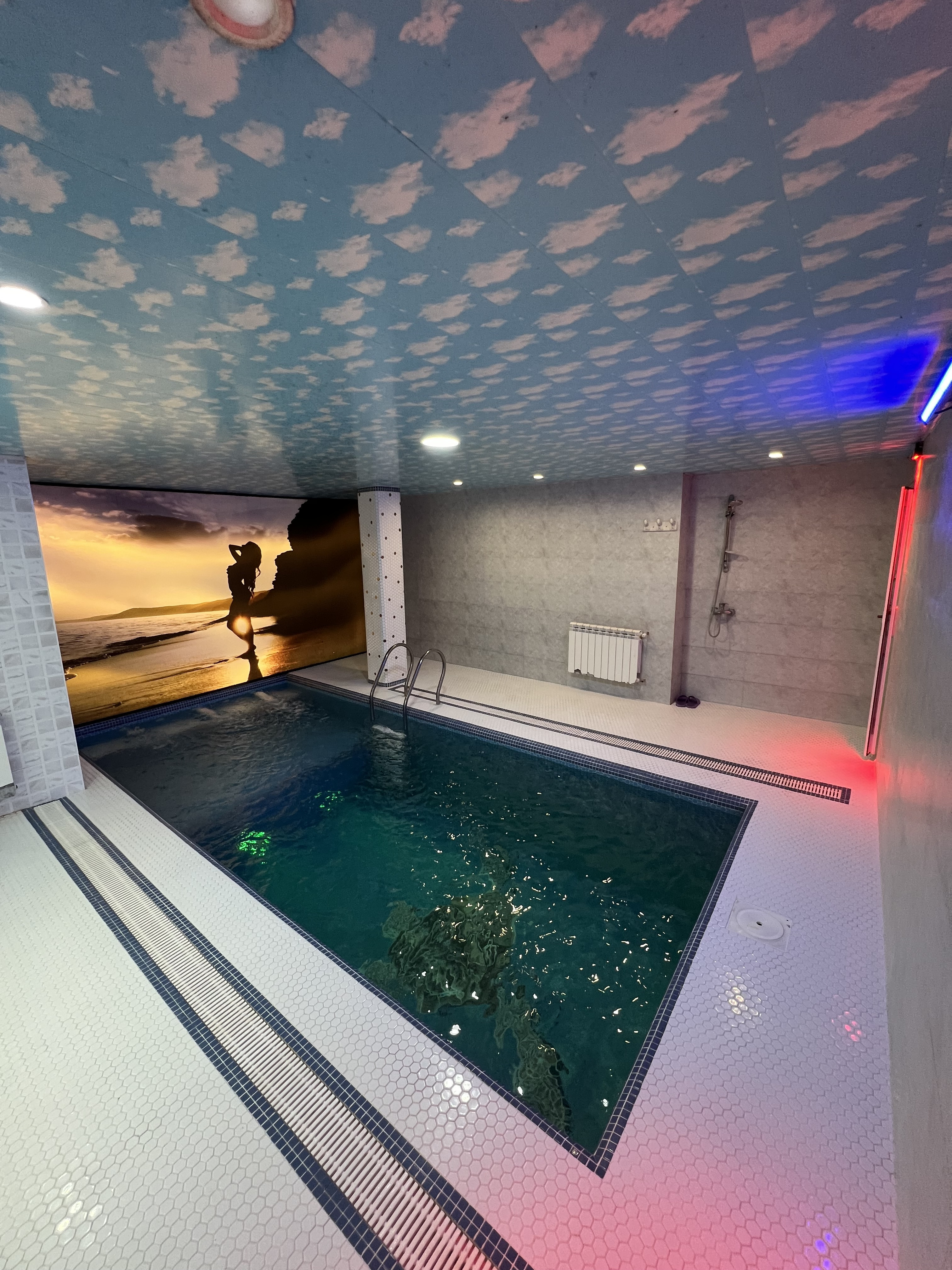 ابعاد استخر 3 در 6 است و عمق آن از 1/50 تا 1/80 است و همچنین دارای استخر کودک است.