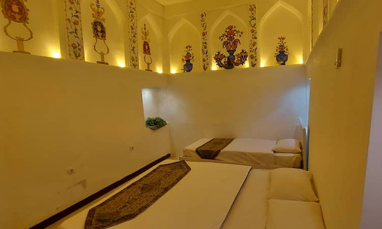 اتاقی دنج با گچ بریهای قدیمی و نقاشی های دیواری زیباست. به دلیل داشتن معماری سنتی و تاریخی، سرویس بهداشتی این اتاق در حیاط قرار دارد.