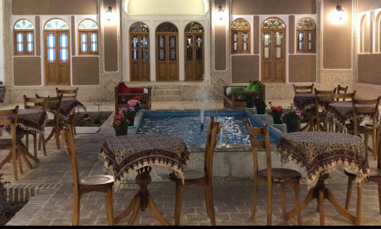 اقامتگاه سنتی پنجه آفتاب دارای حیاط با میز و صندلی است .