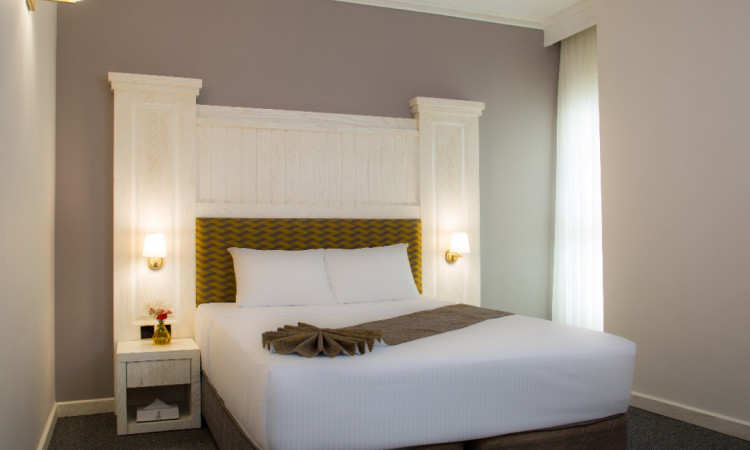 امکاناتی از جمله روم سرویس، IPTV، شبکه پخش فیلم، یخچال، پاورسوئیچ، مبلمان، دراور، آباژور، آب رایگان، کمد لباس، تلفن در اتاق، تلویزیون، حمام، لوازم بهداشتی، دمپایی، سیستم اعلام حریق، مینی بار با هزینه، سیستم تهویه مطبوع دراتاق، سیستم اطفاء حریق در اتاق، اینترنت در اتاق، سرویس بهداشتی فرنگی و ایرانی در اتاق دارد.