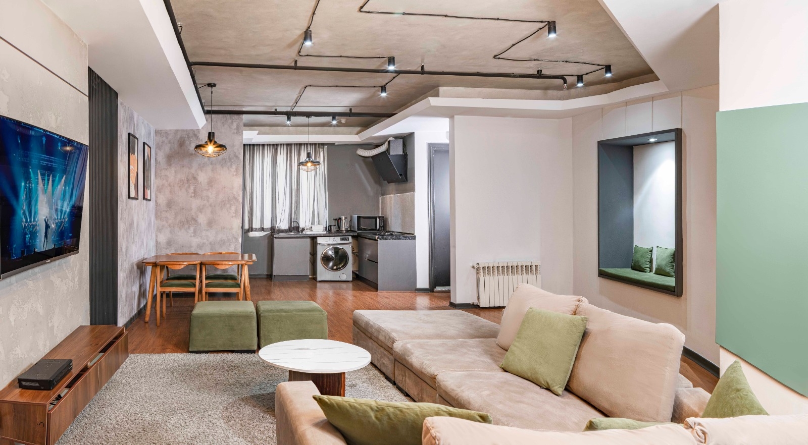 یه دیزاین ژورنالی با تم صنعتی. اینقدر این ساختمون شیکه که هی دلت میخواد سلفی بگیری و پست بذاری اینستاگرام. علاوه بر واحد و پارکینگ، انباری هم میگیری. ویو خوب. ارایه پک بهداشتی (شامپو سر و بدن، مسواک و خمیردندان، حوله) در هنگام ورود نظافت هتلی تعویض ملحفه و روتختی قبل از ورود مهمان; امکان رزرو صبحانه مشاعات این ساختمون یه ذره ضعیفه. راهپله و لابی اصلا به پای داخل واحد نمیرسه. بر پارک وی هست و ترافیکش بالاست. امکانات اطراف: بیمارستان ( خاتم الانبیا ) مجتمع تجاری پارک وی. سام سنتر دسترسیها: ولیعصر/ الهیه/تجریش/فرشته/محمودیه; بزرگراه ( چمران مدرس)در صورتی که مهمان حداقل 2 روز قبل از تاریخ ورود، نفر اضافه را به میزبان اطلاع دهد، میزبان نسبت به اضافه کردن تخت برای نفر اضافه در اقامتگاه اقدام خواهد کرد.