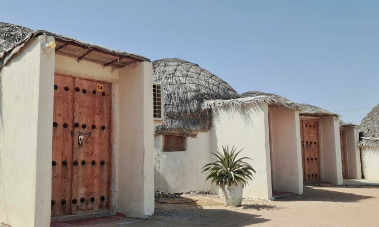 اقامتگاه بوم گردی ساحلی فردیس قشم با مساحت 2000متری و فاصله 6متری از دریا و اتاق هایی با سقف سنتی(کپر)است که حس و