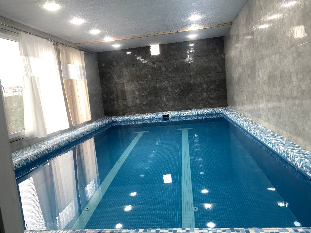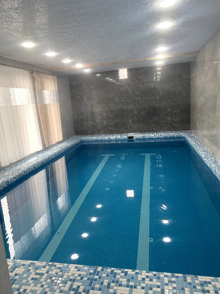 دارای استخر سرپوشیده آبگرم به ابعاد 3.50 در 6.60 متری با عمق 1.20 لغایت 1.65 متری است.