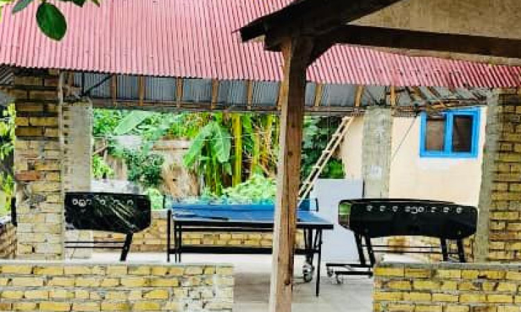 في فناء المجمع ، توجد أجنحة ليلية ومرافق مثل كرة القدم اليدوية وتنس الطاولة وقفص صغير للطيور.