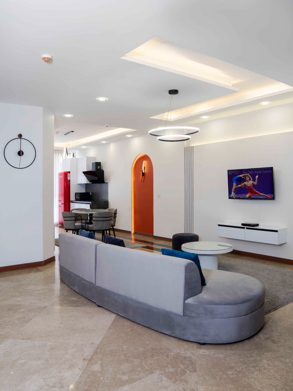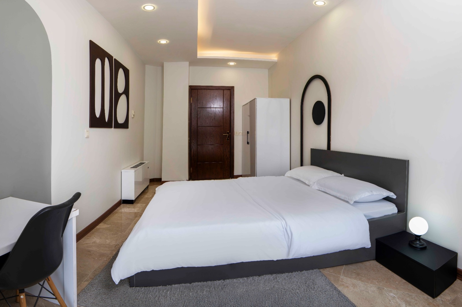 ✅از بوی نویی لذت ببر. ساختمون تازهساخت; ✅ لابی مجهز و مدرن. ✅ تمام وسایل نو و مدرن ✅ ارایه پک بهداشتی (شامپو سر و بدن، مسواک و خمیردندان، حوله) و پک خوراکی(چای، نسکافه و شکلات) در هنگام ورود ✅ نظافت هتلی ✅ تعویض ملحفه و روتختی قبل از ورود مهمان ✅ امکان رزرو صبحانه ✅ دیزاین حرفهای و ژورنالی برای علاقهمندان سبک نئوکلاسیک ❌ ساختمون 8 طبقهس و 52 واحد، شاید این تعداد طبقه و واحد به مذاق همه خوش نیاد. ❌ این ساختمون در حال حاضر ریموت پارکینگ تحویل نمیشه ولی نگهبان 24 ساعته هست و در پارکینگ رو براتون باز میکنه. امکانات اطراف: بیمارستان (مفید لبافی نژاد) مترو (Ⓜ️شریعتی). سفارتخانه (گرجستان سویس) مرکز خرید ( برج سفید) دسترسیها: هروی/اختیاریه/اقدسیه/دروس/فرمانیه بزرگراه (همت صدر)در صورتی که مهمان حداقل 2 روز قبل از تاریخ ورود، نفر اضافه را به میزبان اطلاع دهد، میزبان نسبت به اضافه کردن تخت برای نفر اضافه در اقامتگاه اقدام خواهد کرد.