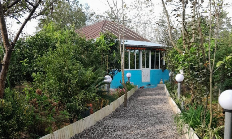 إطلالة المنزل باتجاه الفناء ويمكن رؤية أشجار الفاكهة، على الجانب الأيمن من هذا المنزل توجد حقول الأرز وقد أعطت له تأثيراً جميلاً.