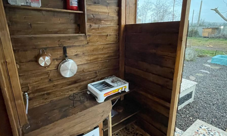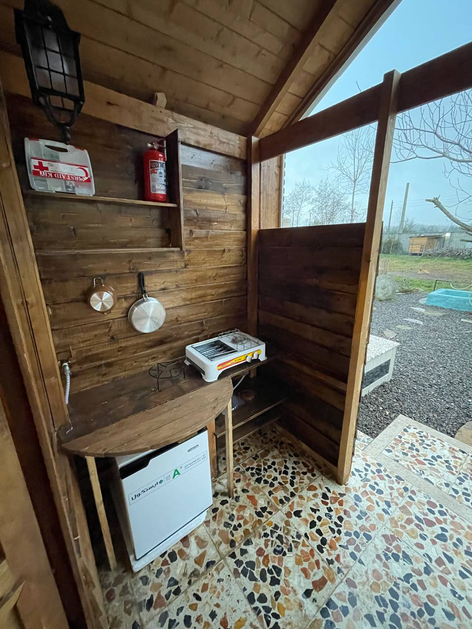 سینگ ظرف شویی و مکان شستشو در حیاط است.
