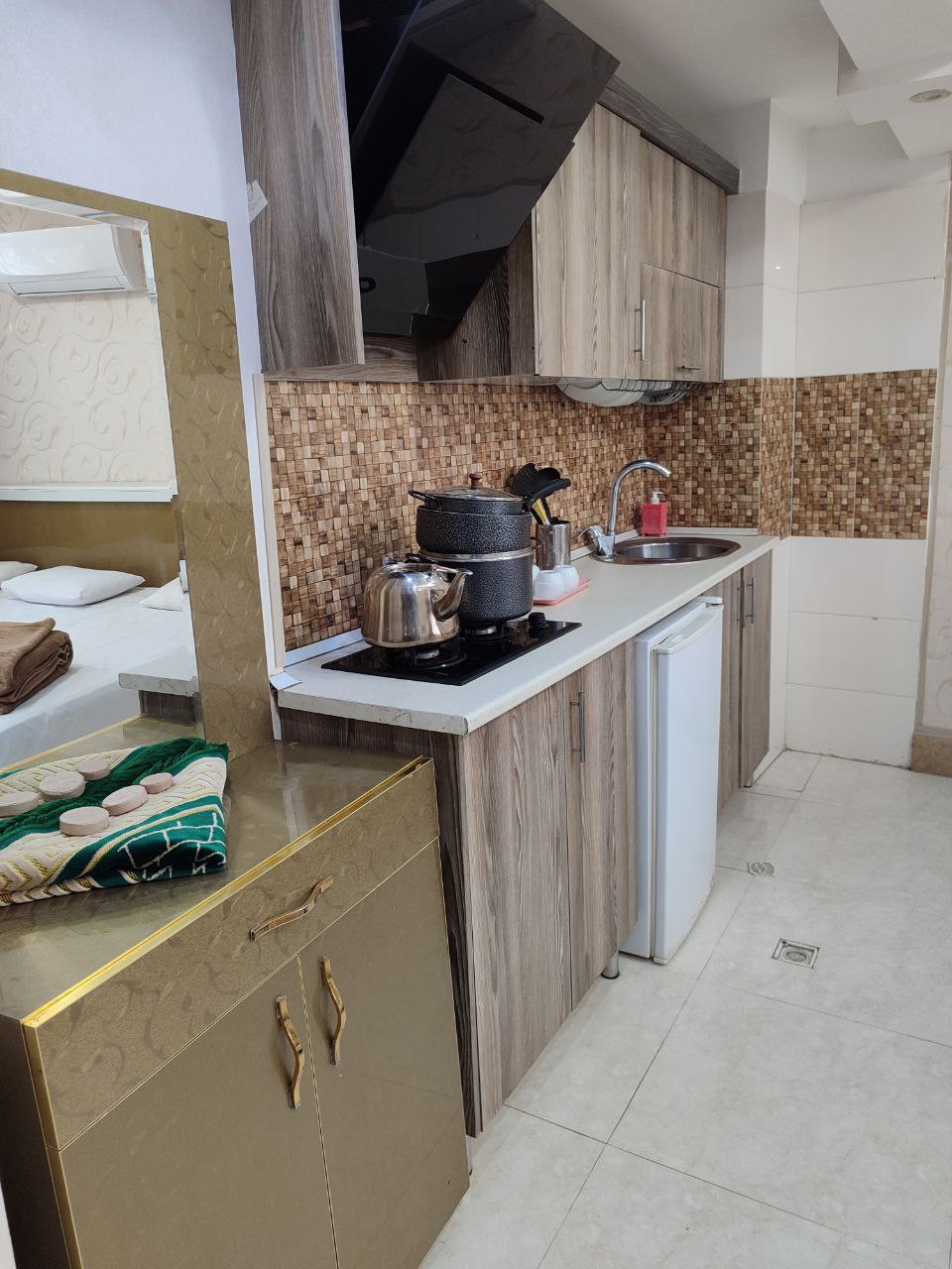 از امکانات این اتاق میتوان به لوازم پخت و پز ، گاز و یخچال اشاره کرد.