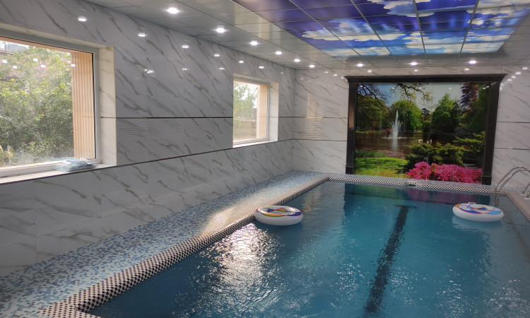 ابعاد استخر 4 در 9 متر است و عمق استخر 90 در 1/55 متر است.